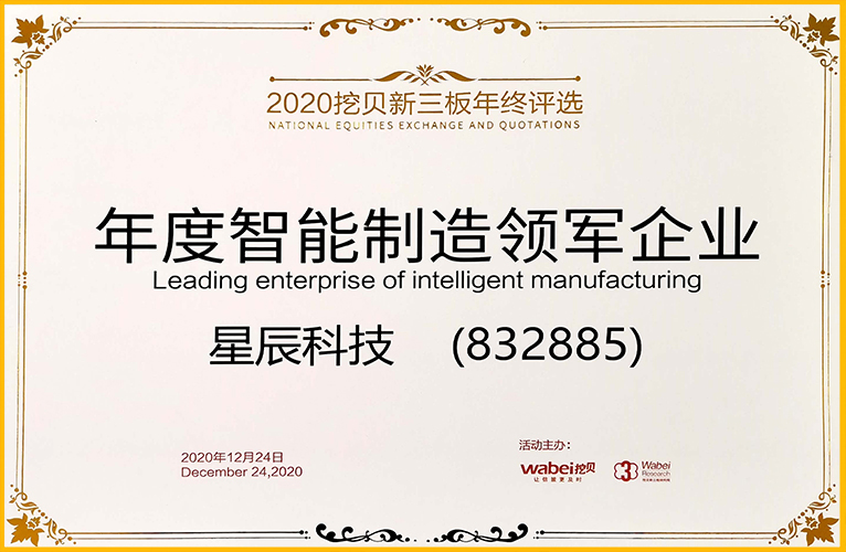 公司榮獲2020挖貝新三板年終評選“年度智能制造領軍企業(yè)”稱號