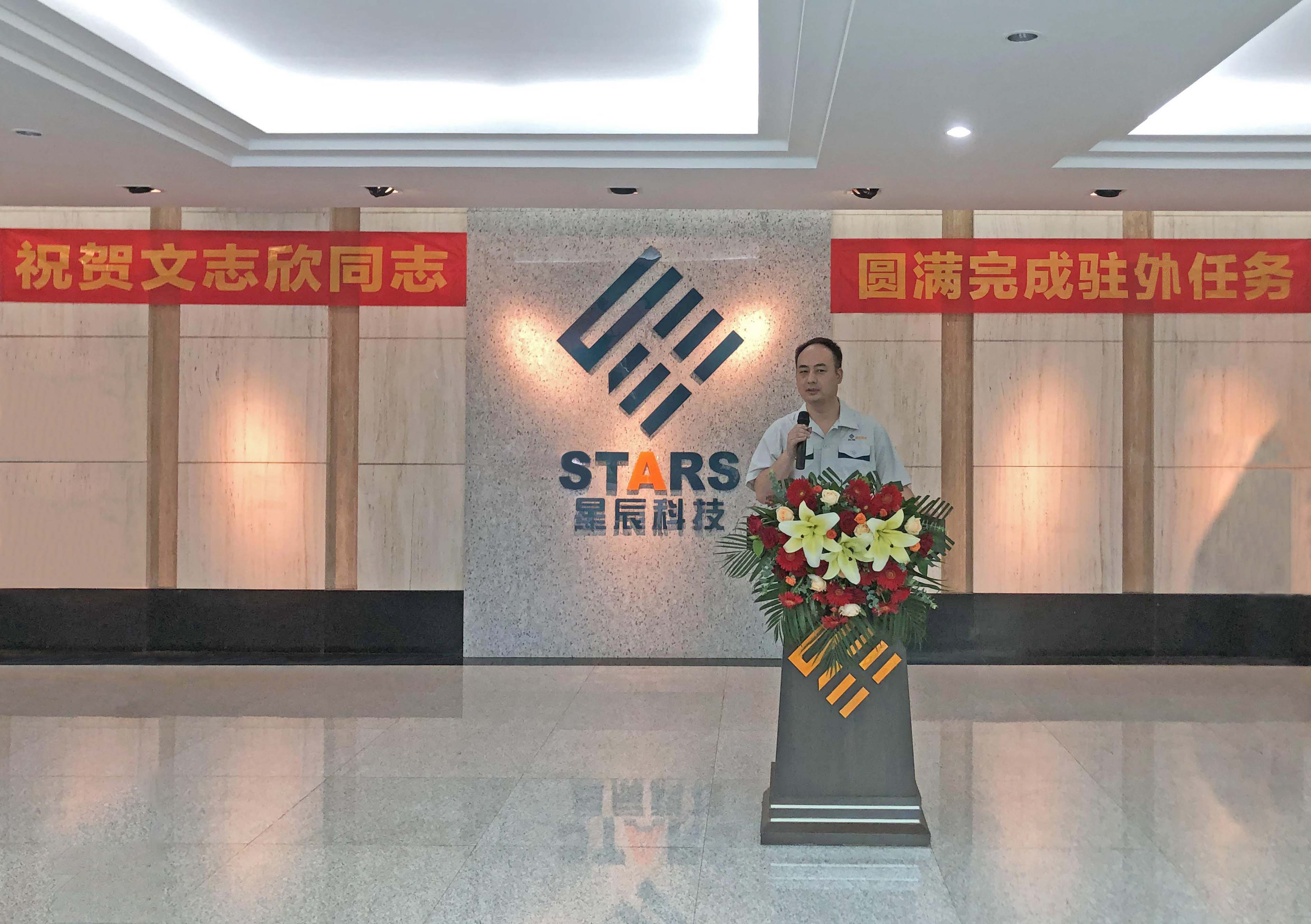 最后,我們熱烈祝賀文志欣同志圓滿完成任務(wù),平安歸來。同時,也希望我們星辰科技所有員工,向文志欣同志學(xué)習(xí)。在今后的工作中勇創(chuàng)佳績,再創(chuàng)輝煌!