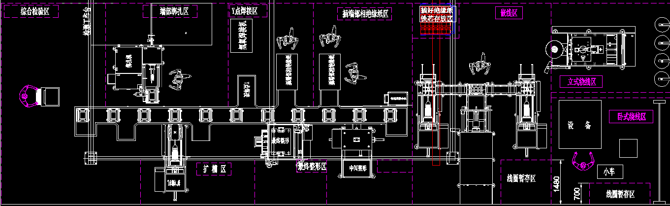 定子自動(dòng)化生產(chǎn)線由插紙機(jī)、立式繞線機(jī)、嵌線機(jī)、嵌擴(kuò)機(jī)、中間整形機(jī)、最終整形機(jī)和綁線機(jī)等設(shè)備組成。