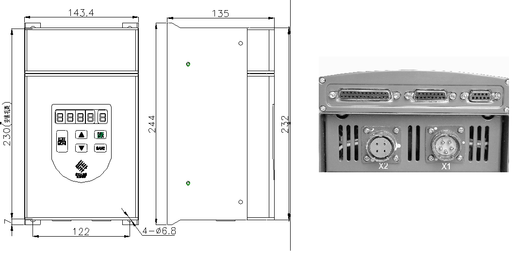 1.MDS10D550直流伺服驅(qū)動器外形尺寸示意圖(單位:mm):
