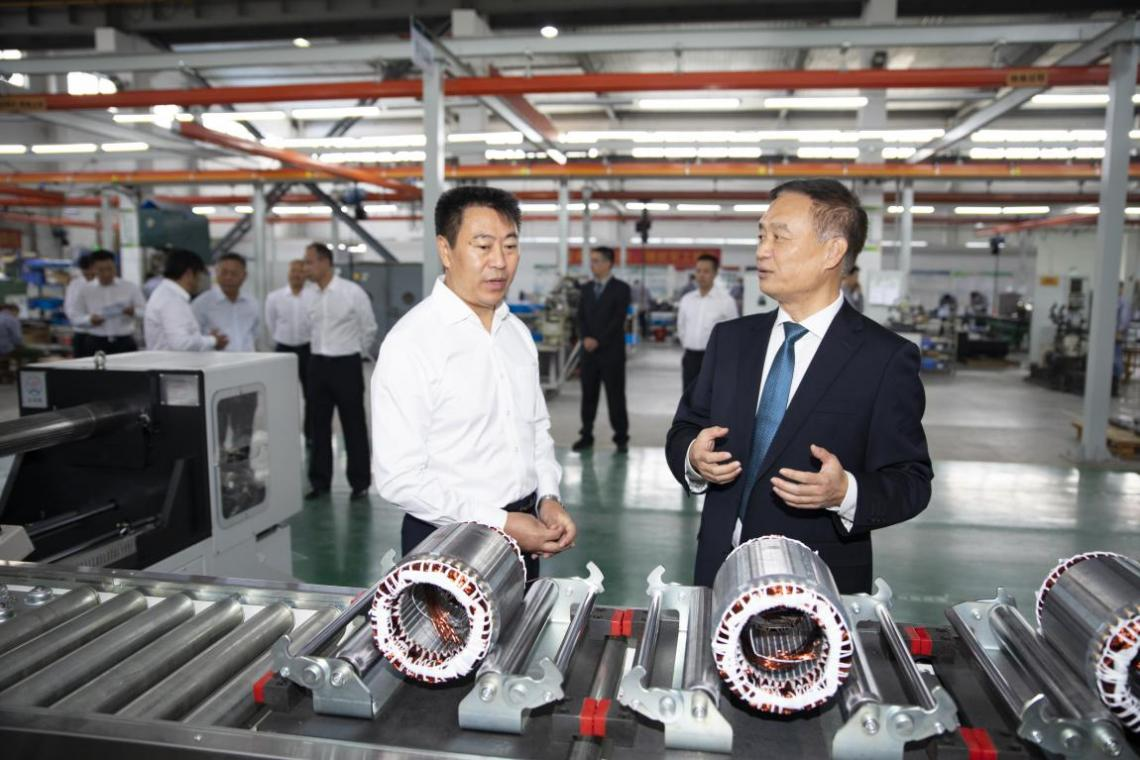 ▲ 總經(jīng)理馬鋒向七星區(qū)郭區(qū)長介紹電機(jī)自動生產(chǎn)線