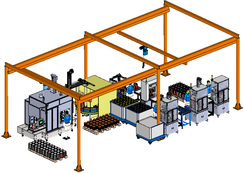 該生產(chǎn)線主要由定子自動(dòng)入殼、冷卻系統(tǒng)、冷壓軸承和定轉(zhuǎn)子合裝機(jī)等設(shè)備組成。